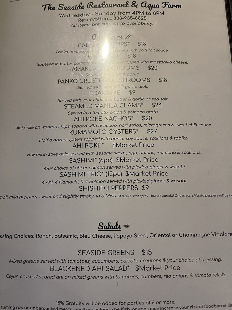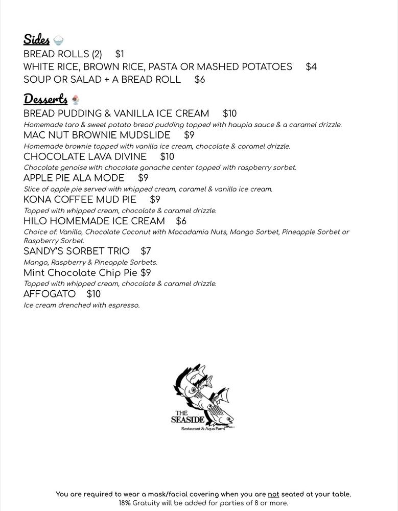 Welcome to The Seaside Restaurant and Aqua Farm, where the flavors of Japan meet the bounty of the sea. Nestled in the picturesque setting of Hilo, Hawaii, this restaurant offers an impressive menu focused on seafood, showcasing both Japanese culinary traditions and local freshness.